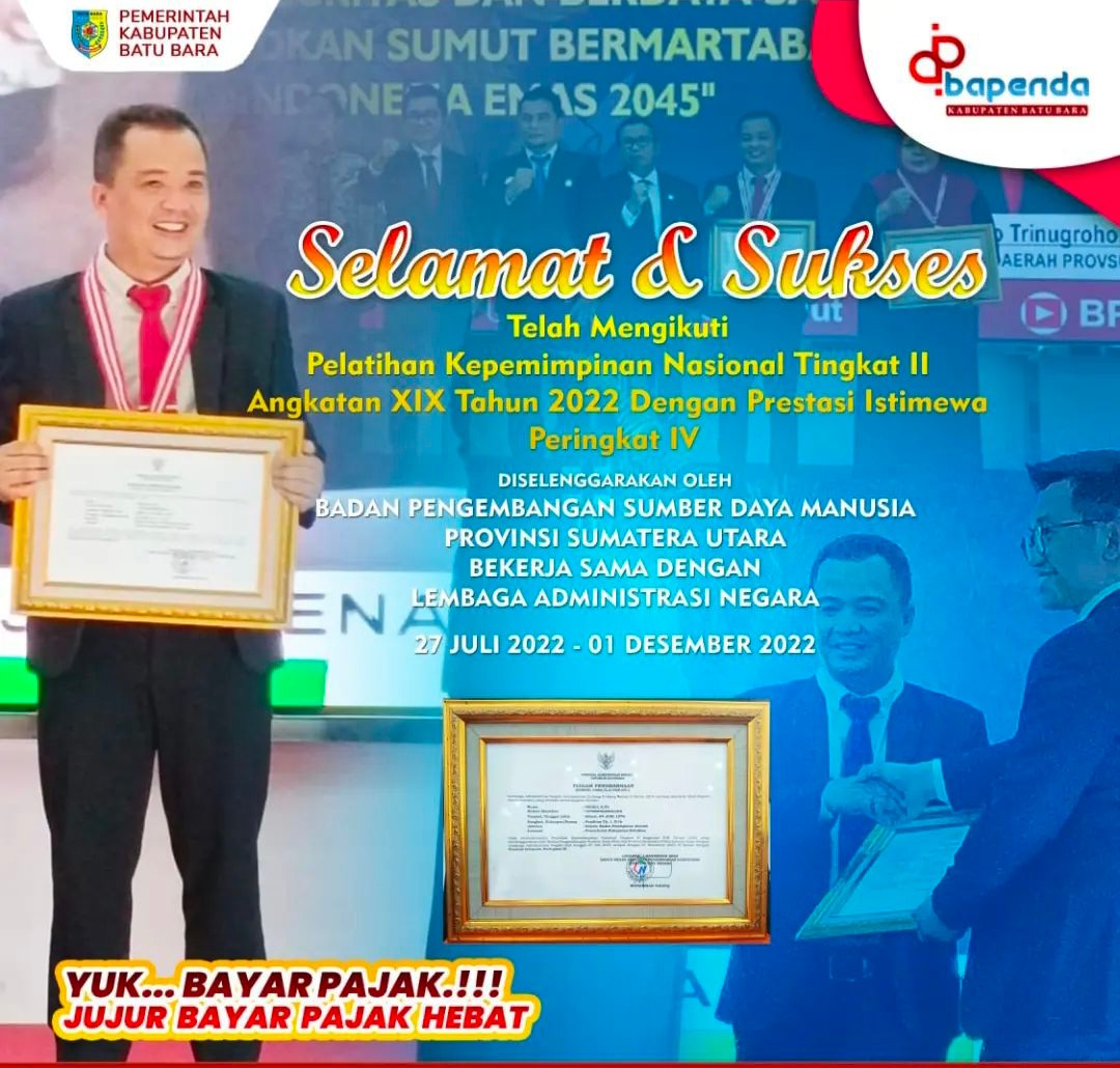 Tak luput dalam hal ini, Kepala Badan Pendapatan Daerah Batu Bara , Rijali, S. Pd, yang juga turut mengikuti Pelatihan Kepemimpinan Nasional (PKN) Tingkat II Pemerintah Provinsi Sumatera Utara Angkatan XIX Tahun 2022.