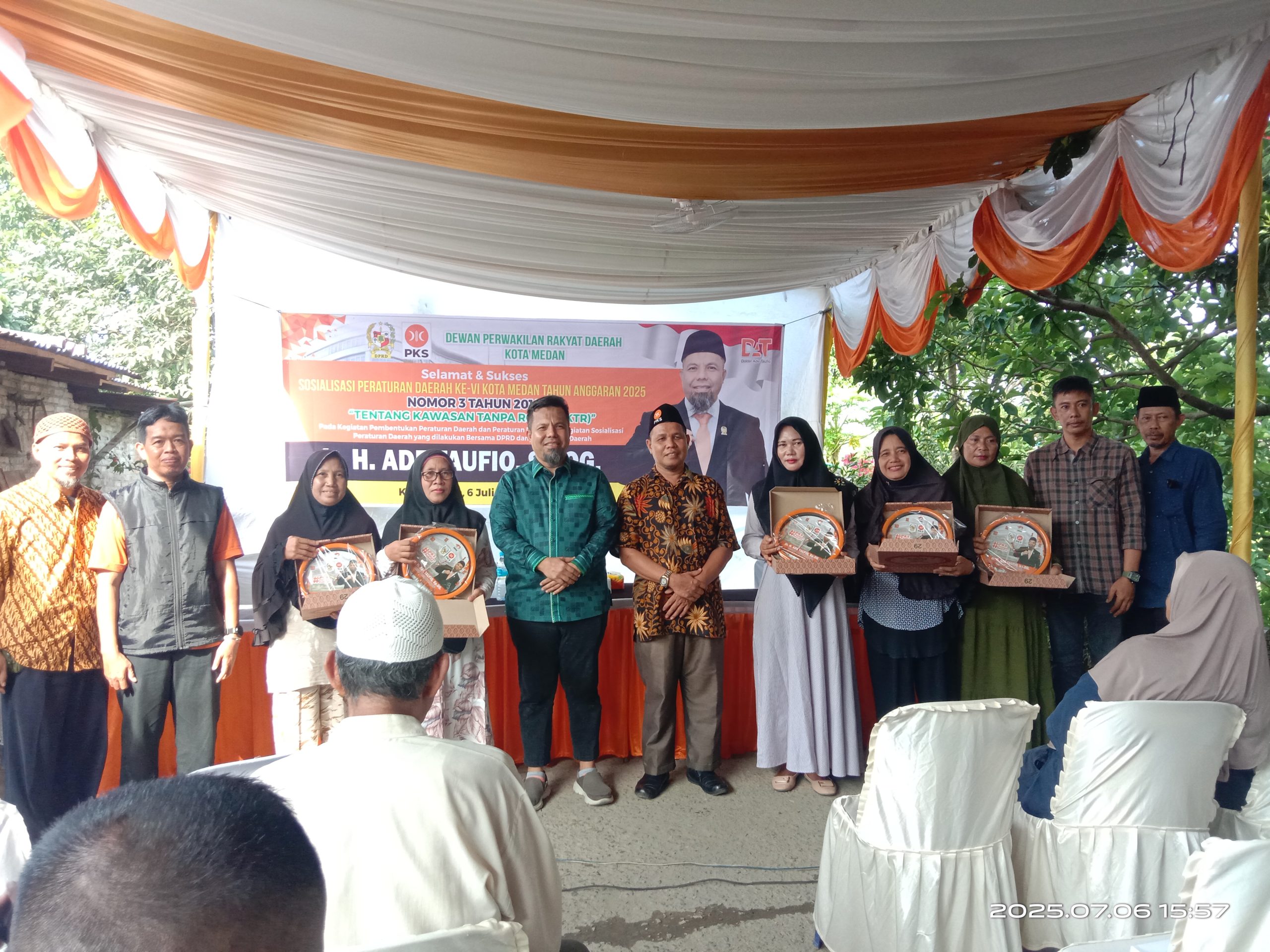 Kasatnews.id, Medan – Anggota DPRD Kota Medan dari Fraksi Partai Keadilan Sejahtera (PKS), dr.Ade Taufiq, Sp.OG, melaksanakan sosialisasi produk hukum Peraturan Daerah Nomor 3 Tahun 2014 Tentang Kawasan Tanpa Rokok (KTR) di Jalan Bajak 2 H. Gang Ikhlas Kelurahan Harjosari II Kecamatan Medan Amplas, Minggu (6/7/2025) siang. Ade Taufiq memaparkan seputar larangan lokasi hingga hukuman pidana bagi siapa saja yang melanggar peraturan tersebut, termasuk mempromosikannya.