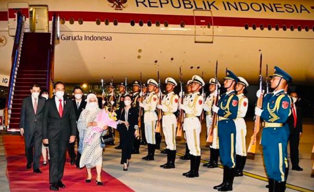 Kasatnews.id , China – Presiden Joko Widodo (Jokowi) dan Ibu Negara Iriana tiba di
