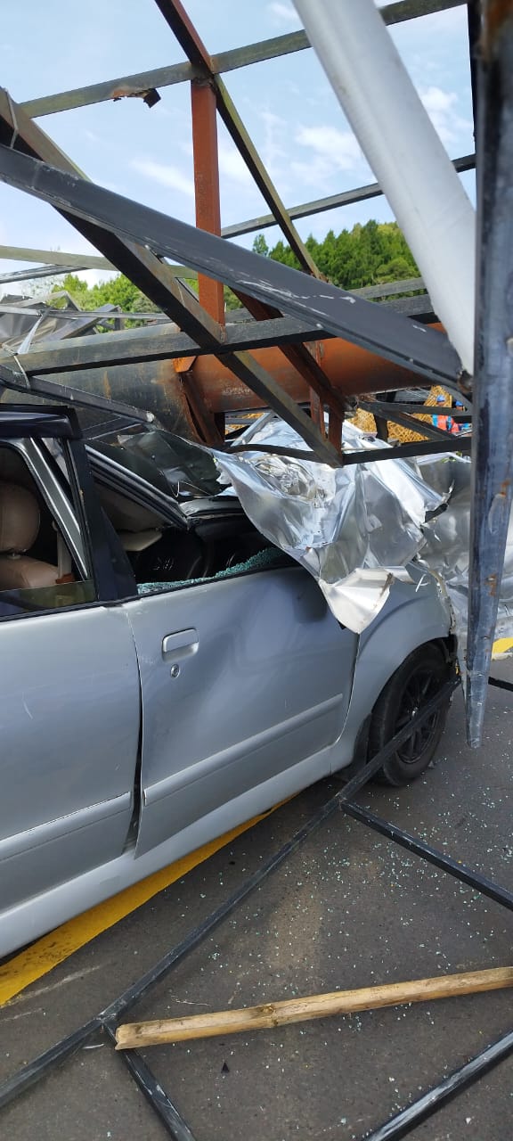 Kasatnews.id , Denpasar – Baliho dengan ukuran besar roboh dan menutupi jalan Denpasar –