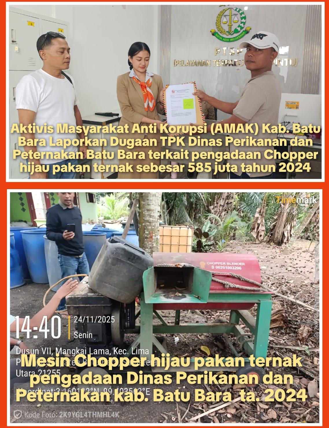 Batu Bara AMAK Laporkan Dugaan Korupsi Pengadaan Chopper Hijau by kasatnews November 26, 2025 Kasatnews.id , Batu Bara – Aktivis Masyarakat Anti Korupsi (AMAK) Kab. Batu Bara Erizal